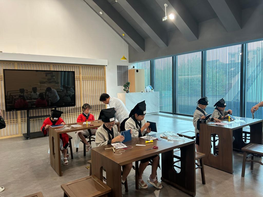 由工作人員帶領(lǐng)學(xué)生參觀紹興師爺館,了解紹興的師爺文化,學(xué)習(xí)掛號(hào)師爺所獨(dú)創(chuàng)的古老檢索法,通過(guò)手工制作中國(guó)傳統(tǒng)線裝本,感受傳統(tǒng)國(guó)學(xué)魅力。
