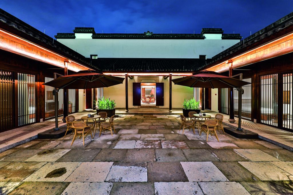 青藤別苑位于紹興市越城區(qū)后觀巷35號(hào)(徐渭藝術(shù)館西側(cè)),是具有徐渭文化特色的主題酒店。整體建筑面積780平方米,分上下兩層,主要經(jīng)營(yíng)住宿服務(wù)。酒店設(shè)有八個(gè)不同類(lèi)型的房間,套房主題分別為渡海、眠松、行吟、行舟、對(duì)弈、扶醉、漁者、菊石、觀棋。入住其間,隨處可見(jiàn)文人筆下紹興人文風(fēng)物的靈秀。酒店還采用 “奪得千峰翠色來(lái)” 的越窯青色為局部墻體上色,營(yíng)造出溫馨放松的居住環(huán)境??头抗艠闱逖牛删毜目臻g線(xiàn)條、高級(jí)的材質(zhì)以及藝術(shù)化的裝飾,都以低調(diào)的設(shè)計(jì)展現(xiàn)著空間的本質(zhì),讓賓客在休憩之余能感受到古今韻味的自然連接,筆墨流轉(zhuǎn)間彰顯臺(tái)門(mén)禮序,簡(jiǎn)筆勾勒中續(xù)寫(xiě)江南古韻。
