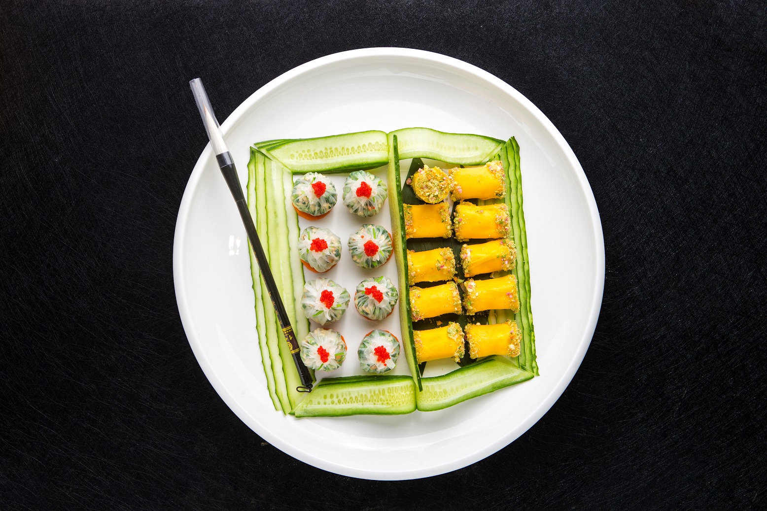 餐廳以景入肴、以詩入肴、以畫入肴的理念,結(jié)合時令創(chuàng)制出與徐渭文化相關(guān)聯(lián)的菜品,用美食致敬徐渭,特色菜品有文長一支筆、明珠然璀璨、石榴包拼荷花酥、文長私房菜等。