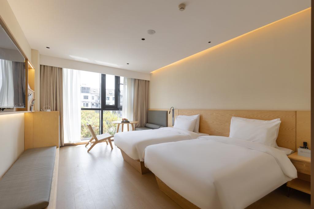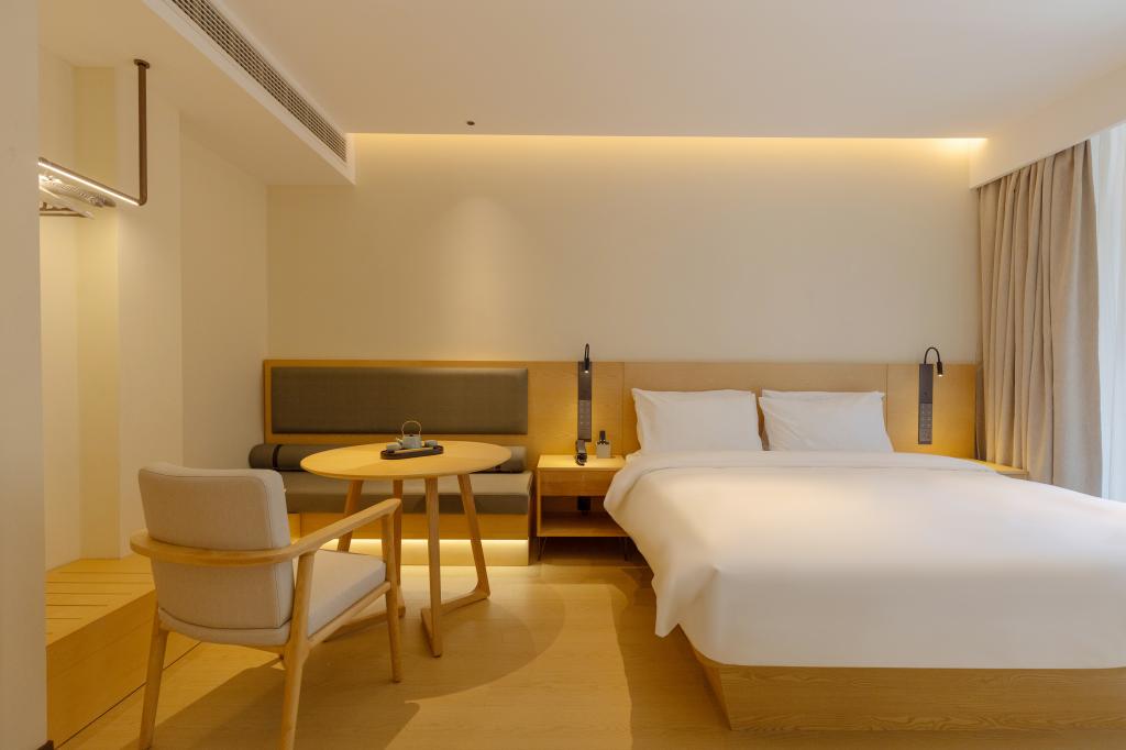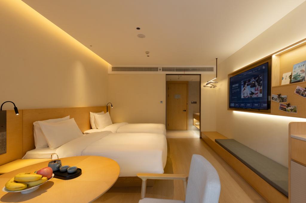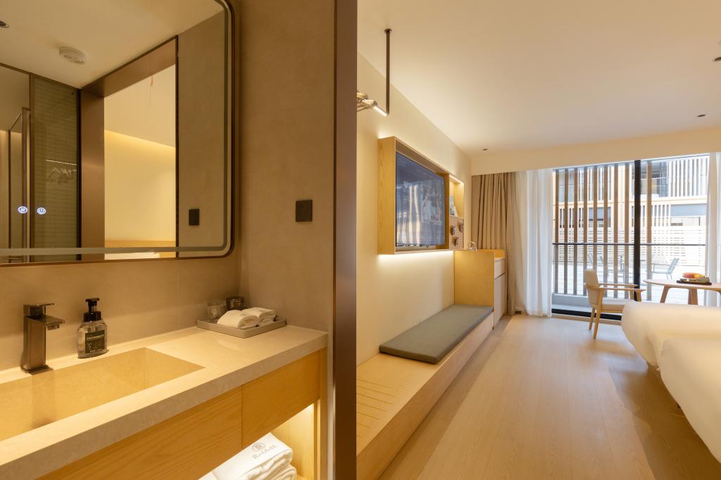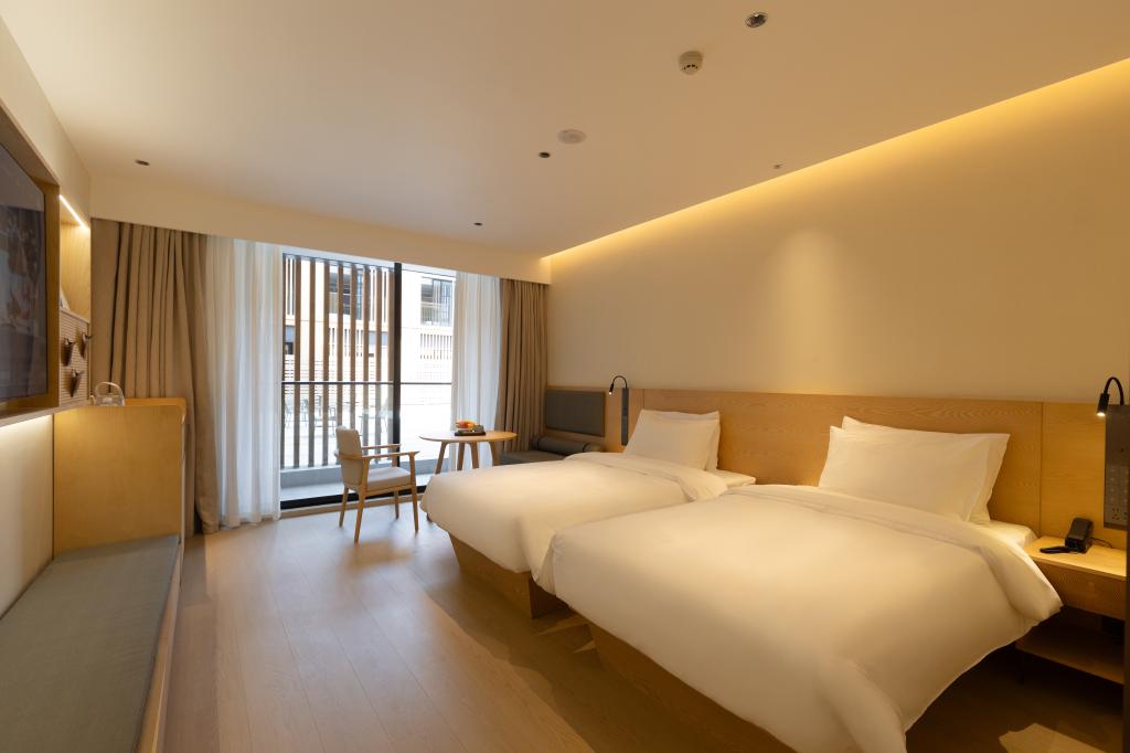 酒店擁有74間風格各異的客房,包括安善景觀大床房(露臺)、安善景觀大床房(陽臺)、曲水舒適大床房、雙輝景觀雙床房、雙棲舒適雙床房等。
