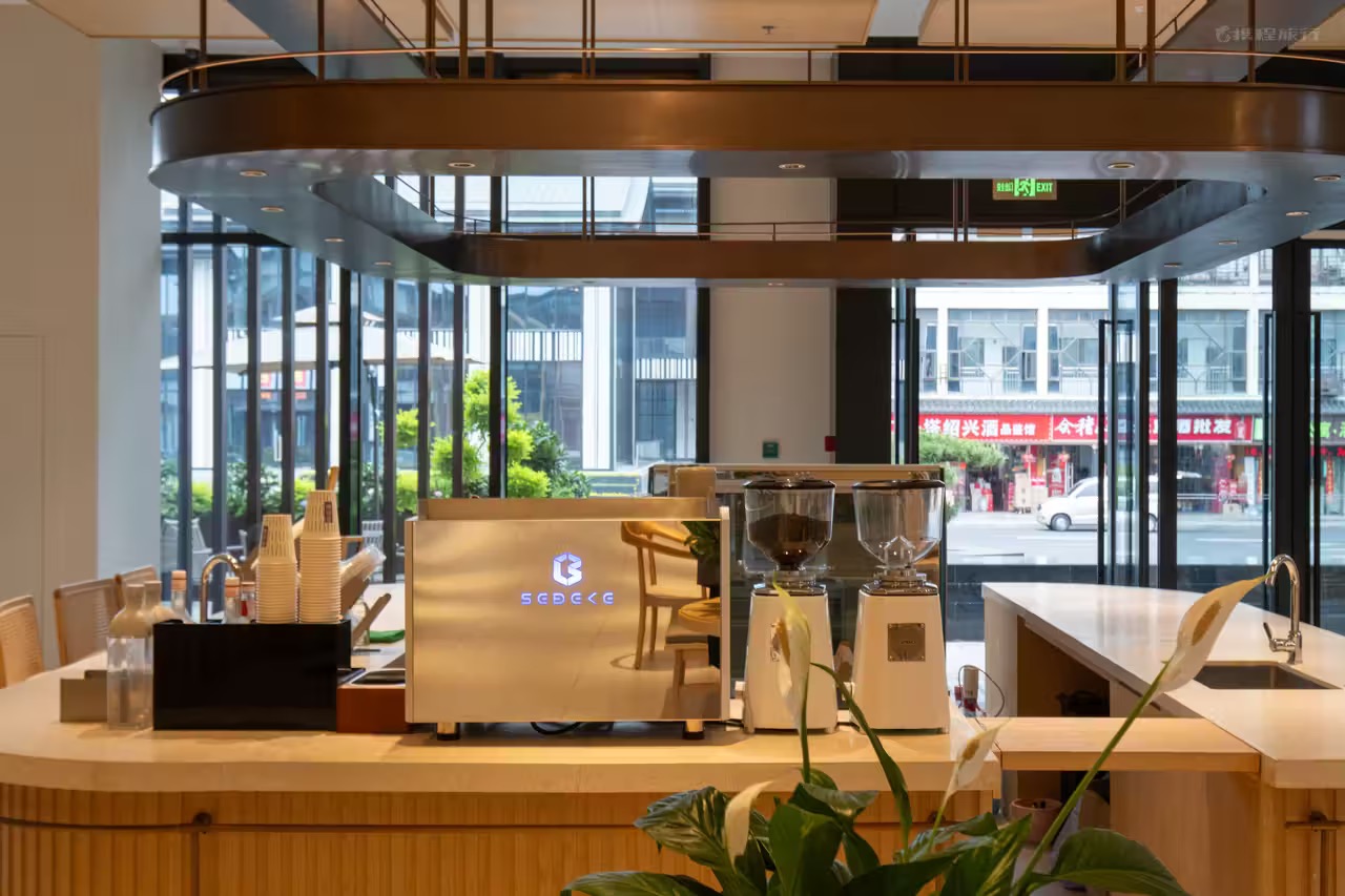 “兩株樹咖啡 鏡湖店”位于越城區(qū)梅南路18號(hào),除常規(guī)飲品外,還供應(yīng)披薩、漢堡、意面、小吃等西式簡(jiǎn)餐品類?!皟芍陿洹笨Х仁俏穆眉瘓F(tuán)自創(chuàng)的咖啡品牌,是源于魯迅散文集《野草》中的原句“在我的后園,可以看到墻外有兩株樹,一株是棗樹,還有一株也是棗樹。”所創(chuàng)建的魯迅文化主題咖啡品牌?!皟芍陿洹笨Х燃Х取⒉栾?、輕食及文創(chuàng)產(chǎn)品于一體,不僅提供咖啡等飲品,還承接公司團(tuán)建活動(dòng),致力于推廣獨(dú)特的咖啡文化。