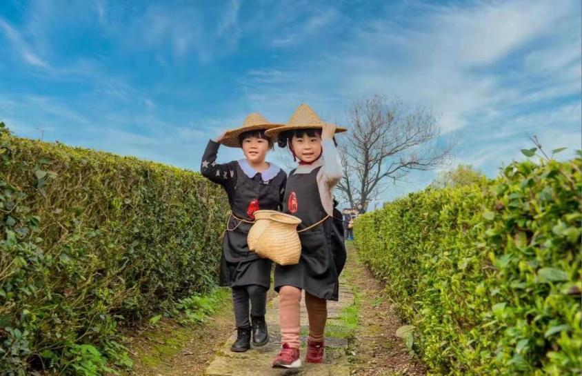 ??? 春季除了采摘這件大事,做回“小茶人”研學(xué)活動也伴隨著茶葉的瘋狂成長而拉開序幕。登上繞門山、背上小竹簍、在茶海里挑冒尖的嫩芽采下。采摘下來的茶須于日光下攤曬,才能進(jìn)行炒制。而此時,不可錯過的便是體驗親子采茶的樂趣